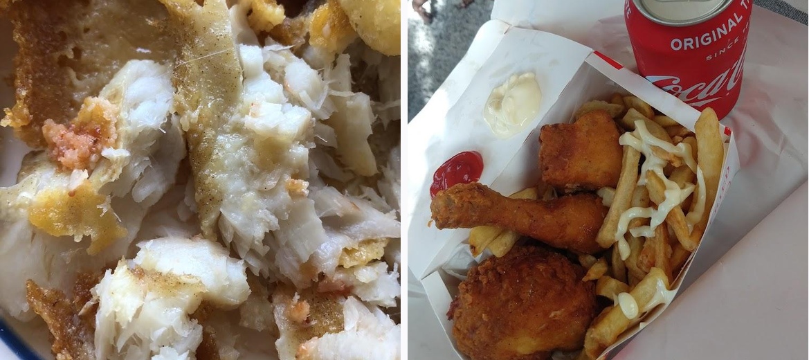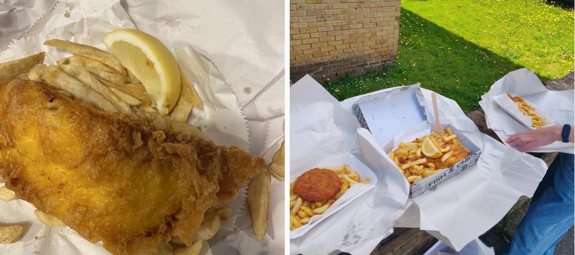 Best fish and chips in Folkestone! Fish was fried per order. Chips portion was generous. Had the small cod and chips and the portion was very filling. Service is efficient and very friendly. No seating area but there's a big park nearby to sit and eat. 100% recommended!